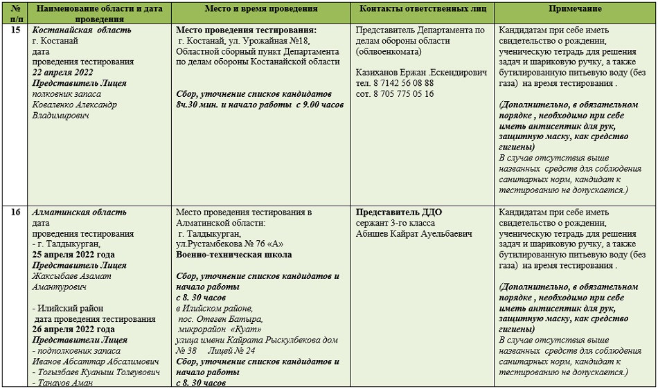 Перечень предметов для поступления в лицей