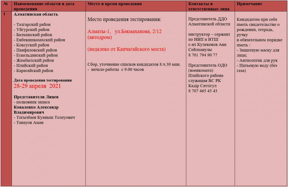 Перечень предметов для поступления в лицей